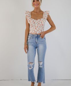 FINAL SALE – Cindy Light Wash Distressed Crop Flare Jeans