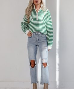 FINAL SALE – Emily Medium Wash High Rise Distressed Straight Leg Jeans
