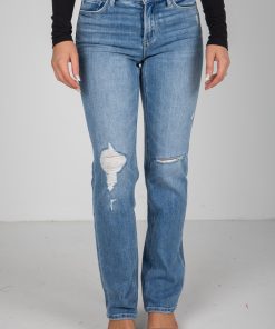 Rylee Medium Wash High-Rise Distressed Straight Leg Jeans