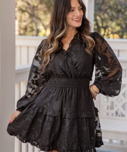 The A Garden of Wonder Black Floral Mini Dress is effortlessly romantic with a touch of texture. Featuring a subtle floral jacquard pattern, a flattering wrap-style bodice, and a softly smocked waist, this dress hugs in all the right places without feeling tight. The lightweight, flowy skirt makes it perfect for date nights, dinners, or special plans when you want to feel feminine and comfortable.