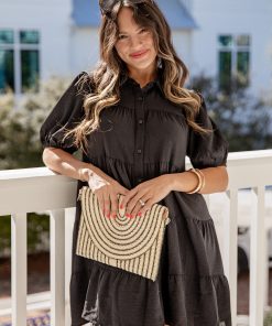 The Clean Slate Black Tiered Mini Dress is an effortless essential with a polished edge. Designed with a relaxed, straight silhouette, this dress features a classic collared neckline, full button-front closure, and lightweight woven fabric that drapes beautifully. Easy to wear on its own or layered with boots, sneakers, or a belt for added shape, it’s the perfect throw-on-and-go piece for busy days and casual plans alike.