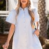 The Cotton Cloud White Tunic Mini Dress is a clean, classic staple with endless styling potential. Designed with a relaxed, easy silhouette and full button-front detailing, this dress offers both comfort and versatility. Crafted from a lightweight cotton fabric, it feels breathable and soft against the skin, making it perfect for all-day wear. Wear it as a dress, style it with a belt for a more defined shape. Whether you’re heading to work, traveling, or enjoying a laid-back weekend, this piece adapts effortlessly to any occasion. Timeless, versatile, and endlessly wearable, it’s a wardrobe essential.