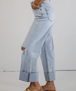 Demi Light Wash Super High-Rise Cuffed Baggy Wide Leg Jeans