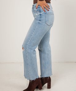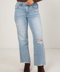 Meet your new everyday denim: the Elise Light Wash High-Rise Distressed Slim Wide Leg Jeans deliver the perfect blend of laid-back style and flattering fit! The high-rise waist smooths and shapes for a confident silhouette, while the slim wide leg cut gives that timeless, easygoing feel. Light distressing adds just the right amount of edge, making them effortlessly cool without being overdone. Crafted from comfortable, slightly stretchy denim, they move with you while keeping their classic structure. Pair them with tees, sweaters, or blouses — these jeans are made to style with everything and wear everywhere!