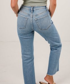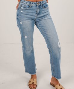 FINAL SALE – Aria Light Wash High-Rise Distressed Stretch Straight Jeans