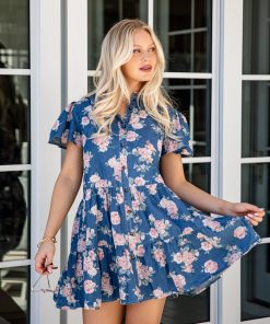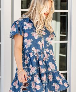 Bring a pop of playful charm to your wardrobe with the In The Air Floral Denim Tiered Mini Dress! Featuring a soft denim-like light wash adorned with delicate pink floral prints, this dress is designed with a classic collared neckline and a tiered silhouette that creates a flirty, flowy fit. The mini length and button-up detail add a touch of casual sophistication, making it perfect for brunch dates, garden parties, or sunny day outings. Pair it with sandals or sneakers for an effortlessly chic look!