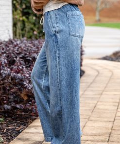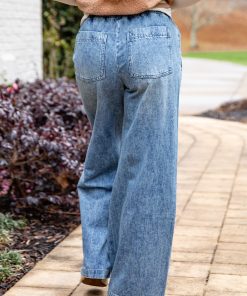 Jodie Medium Wash High-Rise Drawstring Waist Wide Leg Jeans