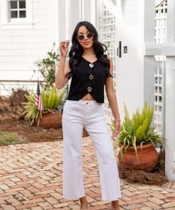 - Button + Hidden Zipper Fly Closure