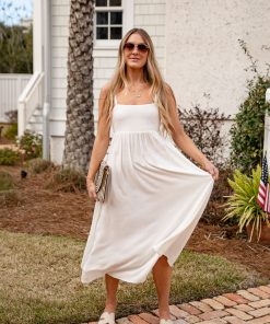 The Want It All Sleeveless Off White Midi Dress is a warm-weather essential with timeless appeal. Designed with a relaxed fit, breathable cotton fabric, and clean silhouette, it’s perfect for layering or wearing on its own. Style it with sandals, sneakers, or light layers for effortless versatility.